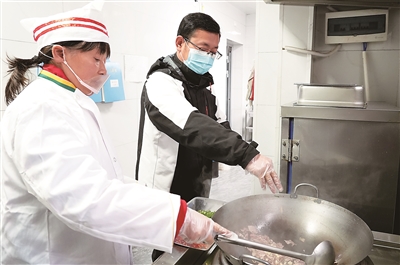 江西萍乡—— 膳食搭配 营养健康 “糜师傅好,今天我来后厨体验,请您多指导。”上午9点半,记者换上工作服,戴上帽子、口罩、手套,走进江西萍乡市安源区丹江街道嵌入式养老服务中心后厨,向主厨糜思香问好。 “欢迎!中午吃大蒜炒扣肉、肉末鱼豆腐、清炒大白菜、香菇鸡汤,咱10点45分开始炒菜,11点15分准时开饭。”糜师傅随即介绍今天的工作流程,“扣肉要提前蒸,我先洗洗肉,再切成片。” 糜师傅边切肉边说:“得把肉块切得小一点、薄一点,一会儿白菜不能用手撕,也要用刀切,切细碎。要不营养师那通不过!” “我这儿的营养理论都靠您那执行才有效果呀!老人们咀嚼、吞咽、消化能力弱,食材要注意切小、切碎,烹煮时间也会长一些,让菜更软烂。”站在一旁的欧阳常昌笑着回应,他是萍乡长天松康丹江养老服务中心的院长兼营养师。 10点20分,备菜完毕,欧阳常昌又拿出十几个脐橙,切成块后,给老人送了过去,“饭前一小时,正好吃点水果,补充维生素。” 11点,糜师傅打开蒸柜,端出扣肉和鸡汤,水蒸气混着菜香味扑鼻而来。“扣肉、鸡汤可是大荤菜,老人的饮食不应该清淡低脂吗?”记者不禁疑惑地问。 “你说的有一定道理。不过菜品选择、荤素搭配并不是程式化的,也要根据季节变换调整。”欧阳常昌释惑,“天冷,适当多吃一点荤菜,可以给老人补充热量。进补的时节可以多安排鸡汤、排骨汤等偏荤的汤品。” “因时而异,因地制宜。你看,菜里还放了不少辣椒。”欧阳常昌接着说,“这就涉及另一个重要的膳食原则——在保证营养健康的前提下,菜品口味要适当本土化。萍乡人嗜辣,口味偏重。老人吃了一辈子,吃习惯了,消化系统也适应了。我们做菜的时候就要考虑这点。老人吃得可口,心情愉悦,营养吸收也更好。” 乍一看,后厨准备的都是家常菜,没什么特别。一问营养师,记者才知道怎么排菜谱,大有讲究。“首先,我们要动态掌握老人整体身体健康状况,了解老人口味特点和老人子女意见,据此制定总的膳食原则。具体制定菜谱时,我们会估算蛋白质、脂肪、碳水等成分的量。最后,营养师会根据时令等因素对菜品搭配提调整建议。”欧阳常昌说。 “上菜啦!”糜师傅那边最后一道清炒大白菜已经出锅。饭堂里老人们已经开始排队,一份份地打菜。 不到12点,一些老人已经吃完饭。“大娘,吃得怎么样?”欧阳常昌习惯跟吃完饭的老人聊两句。 “菜新鲜,口味也好,煮得烂,嚼得动。”89岁的黄雪明老人说。 “中午太阳好,您走动走动,消消食,再午休。”欧阳常昌说。 北京朝阳—— 送餐上门 多份关心 “今天上午风挺大,气温也比较低,尽量穿厚点,手套、帽子、围脖等都配齐,防风御寒效果会好些。”一早,记者就收到外卖平台骑手马志鹏发来的提示信息。按照计划,记者当天将跟随这位年轻骑手给社区老人送餐。 上午9点50分,记者与马志鹏在北京市朝阳区香河园街道柳芳北里社区服务站汇合,该服务站二楼西侧专门辟出一间屋子作为“助老e餐”居家养老服务调度中心。 在这里,记者遇到了街道办事处工作人员和养老驿站负责人。“为什么要开展老年送餐服务?”记者问。 “我们街道有一些老人腿脚不方便,尤其天冷风大就不愿出门吃饭,送餐到家门口就很有必要了。”香河园街道民生保障办公室副主任步彦群介绍,香河园街道60岁以上老人有13283位,80岁以上老人有2708位,重度失能老人有701位。 2024年初,香河园街道通过“街道统筹—驿站供餐—平台送餐”三方合作,为辖区符合条件的困难群体中的高龄、独居老人义务开展送餐上门服务,也为其他有送餐需求的老年人提供便捷服务。供餐由福寿苑养老照料中心负责,送餐团队则是10名饿了么平台骑手组成的为老服务送餐小队。 “送餐平台是怎么运转的?咱们怎么给老人送餐?”记者向福寿苑养老照料中心驿站运营总监王贤请教。 “我们建立了呼叫中心平台,通过这个平台,老年人只需拨打电话,平台便能迅速接收到订单,并即刻指派骑手前往驿站取餐,再送餐上门。”王贤介绍,自2024年2月至今,已送餐5000余份,受到老人欢迎。 “快到饭点了,咱们准备一下,出发吧!”随着马志鹏的提醒,记者也戴上头盔,跨上电动车,进行试驾后,一起驶向位于该街道西坝河南里社区的养老驿站。 10点30分,记者来到福寿苑养老服务驿站,刚出锅的咖喱鸡块、熘肉段、海带冬瓜、裙带菜豆腐等菜品香气扑鼻,老年食堂已经热闹了起来,老人陆续开始排队打菜。记者与马志鹏领到2个配送任务,一位是家住西坝河南里社区7号楼的赵老先生,另一位是家住柳芳北里社区3号楼的蒋老先生。 “这份一荤一素是赵老先生的,这份一荤两素是蒋老先生的,您拿好了!”驿站工作人员熟练地把包好的餐盒递过来。马志鹏接过之后,马上套上一个保温袋,再放进外卖袋中并扎紧封口:“天冷,得多上几层‘保险’,防止饭菜变凉。” 10点35分,两份餐食放进电动车保温箱后,骑手立即出发。第一单先送离食堂近些的赵老先生,不一会儿就到了。“您好,您的餐到了。”马志鹏边敲门边说道。赵老先生开门接过饭菜后表示感谢:“你们辛苦啊,天天送饭,小伙子真棒!” 10点40分,记者与马志鹏开始配送第二单。这一单相对远些,需要穿过马路进入另一个社区。骑行在路上,冷风扑面而来,虽然包裹严实,但冷风依然止不住地往身上钻。七八分钟后到达目的地,马
