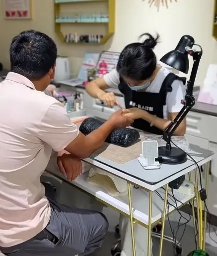 做甲片现场。图/社交媒体 近日,位于河南开封的一家美甲店在网络上走红。因其附近村民在摘豆角时手指甲经常受伤,该店为村民贴上甲片后,村民干活又快又安全。 7月24日,九派新闻联系到该店店主。她表示3年前就开始做了,但知道的人不多,今年7月发布相关视频后,引起了很大的关注。 该店位置离各个村庄都很近,附近的村民骑电动车10分钟就能来到这里,花10块钱就能贴上“摘豆角甲片”。刚开始大爷们会表现得很害羞,尝试过后第二年也就接受了。而贴上甲片的农民评价道,“干活效率会快一点,指甲也没有之前那么疼了。” 店主还称自己既当老板又当员工,每天要贴十几个,每一个会花费十来分钟,而店里面也有很多正常做美甲、美睫的顾客,尽管这样会耽误他们的时间,但顾客们都表示理解。“摘豆角的季节就这一段时间,农民和我们爱美的女士不一样,他们是为了干活。”她说。
