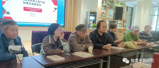 4月14日下午2时,他们在苏州知青文化研究会名誉会长、苏州•蒋巷知青馆馆长钟慎明和中知网南京联络站站长吴青生的驾车陪伴下,终于到达旅途的最后一站——上海,受邀出席在这里举行的“各地知青学术交流座谈会”。 在上海社会科学院瑰丽的图书馆,座谈会由上海市知识青年历史文化研究会顾问张刚主持。岳建一、马波一行饶有兴趣观看研究会宣传视频《十年耕耘 筚路蓝缕(庆贺片)》《知青老照片总结会》《知青馆走进博博会》《上海知青文献库揭牌仪式》。