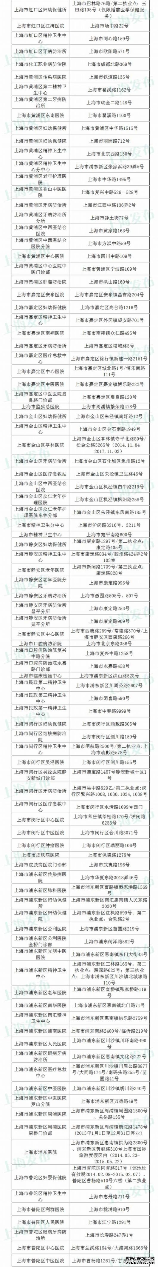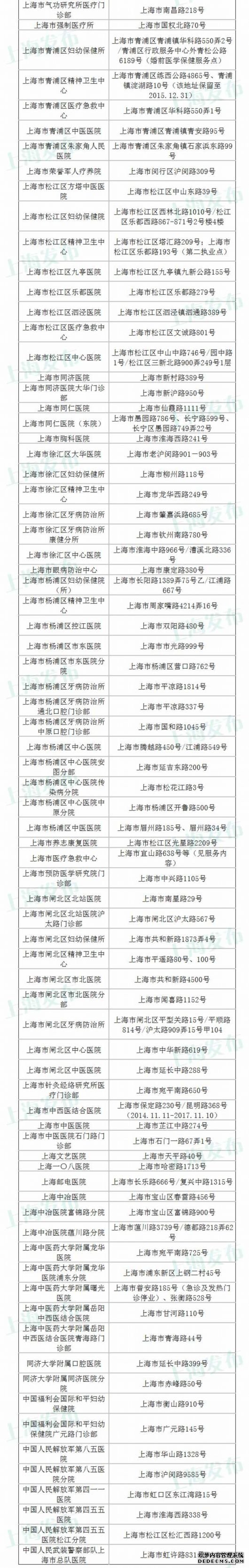上海卫计委公布公立医疗机构最新名录 共271所