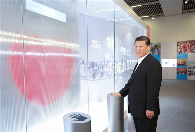 6月26日,中共中央总书记、国家主席、中央军委主席习近平在国家博物馆参观香港回归祖国20周年成就展。全国政协副主席、香港特别行政区行政长官梁振英等陪同参观。新华社记者 兰红光 摄