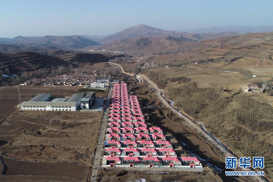 这是2月6日在甘肃省定西市渭源县元古堆村拍摄的易地扶贫搬迁点(无人机照片)。 新华社记者 马希平 摄