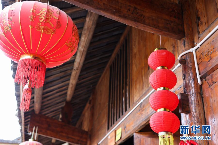 这是2月3日在湖南省湘西土家族苗族自治州花垣县十八洞村一户村民家门口拍摄的红灯笼。 新华社记者 陈思汗 摄