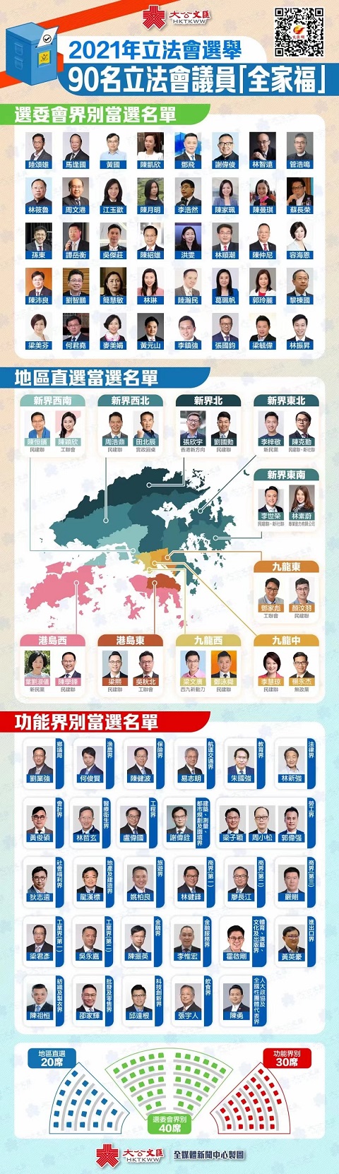 ![]() 香港特别行政区第七届立法会选举投票于19日23时左右结束,经过点票,90人当选新一届立法会议员。这是完善香港特区选举制度后举行的首场立法会选举,对香港未来发展具有重要意义。 同时身为选委会成员的梁振英在脸书发文表示,立法会选委会界别选举结果充分展现当选人的广泛和多元的代表性,相信未来议会将有较高议政水平、均衡参与和广泛代表性的特质。 梁振英称,衷心祝贺所有当选人。“未来4年是香港赶路的4年,是关键的建设期,相信所有议员能同心同德,为国家和香港的进步竭尽所能。他也希望所有落选的参选人能再接再厉,在不同岗位上服务香港,贡献国家。” 据媒体报道,新一届香港特区立法会由90名议员组成,其中包括选举委员会选举的议员40人、功能团体选举的议员30人和分区直接选举的议员20人。第七届立法会任期将于2022年1月1日开始,任期4年。 ![]() 编辑晓歌 (责任编辑:晓歌) |
