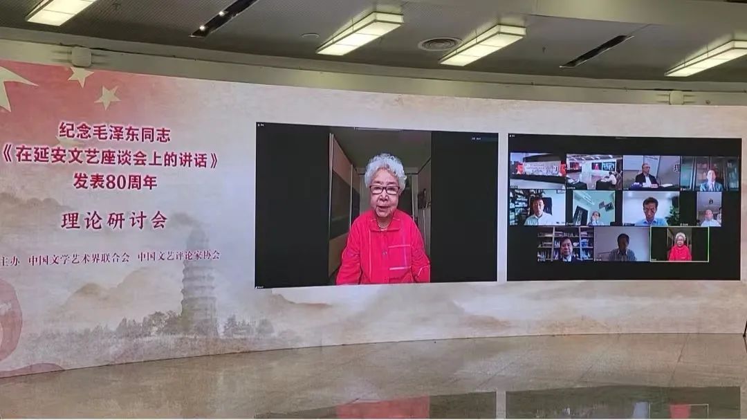 “毛泽东同志《在延安文艺座谈会上的讲话》发表80周年了,我有多少话要讲啊。14岁时,我第一次看到油印本的《讲话》。《讲话》是指引我们为人民服务的灯塔,指引着我跨越了好几个时代。今年8月我就94岁了,我要继续跟着《讲话》精神,不忘初心、牢记使命,永无止境地奔跑!”5月22日,中国文联纪念毛泽东同志《在延安文艺座谈会上的讲话》发表80周年理论研讨会在京召开,著名电影表演艺术家田华深情的发言,引发了大家的共鸣。 作为中国文联纪念毛泽东同志《在延安文艺座谈会上的讲话》系列活动的重要内容,此次理论研讨会由中国文联、中国文艺评论家协会主办,中国文联国内联络部、中国文联理论研究室、中国文联文艺评论中心承办。中国文联主席、中国作协主席铁凝,中国文联党组书记、副主席李屹以及中国文联党组成员、副主席董耀鹏、诸迪,中国文联党组成员张宏,中国文艺评论家协会主席夏潮出席线下研讨会。中国文联所属各全国文艺家协会、机关各部门、各直属单位主要负责同志,田华、仲呈祥、董学文、王一川等艺术家、理论评论家代表共50多人以线上线下形式参加会议。董耀鹏主持会议。 以“党领导的中国文艺发展道路”为主题,中国文艺评论家协会主席夏潮,著名电影表演艺术家田华,著名文艺评论家仲呈祥,北京大学教授董学文,中国艺术研究院研究员王安奎,中国文艺评论家协会副主席、北京师范大学教授王一川,中国文艺评论家协会顾问路侃,中央音乐学院教授王次炤,清华大学美术学院教授陈池瑜,中国社会科学院研究员丁国旗,中央党校教授范玉刚等艺术家和专家学者进行交流发言。 大家一致认为,在全党全国各族人民向着全面建成社会主义现代化国家的第二个百年奋斗目标迈进、迎接党的二十大胜利召开之际,中国文联召开纪念毛泽东同志《在延安文艺座谈会上的讲话》发表80周年理论研讨会,深情重温《讲话》,学习贯彻习近平总书记文艺工作重要论述,具有十分重要的意义。80年波澜壮阔的文艺实践充分证明,毛泽东同志《在延安文艺座谈会上的讲话》是马克思主义文艺观中国化时代化的奠基之作和经典文献,开辟了党领导中国文艺发展的根本方向和广阔道路,它的基本精神颠扑不破,历久弥新,永放光芒。召开理论研讨会,重温《讲话》精神,能够进一步团结引导广大文艺工作者听党话、跟党走,繁荣创作、服务人民,坚定文化自信,增强历史主动,更加坚定自觉地走党领导的中国文艺发展道路,积极投身文化强国建设,为推动文艺工作和文联工作守正创新、高质量发展作出更大贡献。 李屹作主旨讲话。李屹说,召开理论研讨会是为了纪念毛泽东同志《在延安文艺座谈会上的讲话》发表80周年,重温《讲话》的深邃思想和宝贵精神,准确领会和把握党领导百年文艺发展道路的历史逻辑、理论逻辑和实践逻辑及当代价值,更加主动更加科学地推动新时代新征程文艺事业的繁荣发展。 李屹指出,《讲话》第一次全面、系统、鲜明地表达了我们党领导文艺发展的政策主张,从根本上阐明了革命文艺的方向、道路、性质、功能和作用等原则性根本性问题,奠定了党领导文艺工作的基本理论、路线、方针的基石,是毛泽东文艺思想宝库中最璀璨的一颗明珠,是马克思主义文艺理论史上划时代的经典文献,至今仍然绽放着无穷的思想光芒和真理力量。《讲话》充满了科学性,实现了马克思主义文艺理论中国化;《讲话》充满了人民性,充分彰显了唯物史观的理论穿透力;《讲话》充满了实践性,开辟了中国文艺发展的新天地;《讲话》充满了开放性,指引着社会主义文艺实践不断丰富发展。我们要深情回望历史,科学深刻认识《讲话》的经典价值和卓越贡献。 李屹强调,我们要把握时代方位,全面准确领会习近平总书记关于中国文艺发展道路的重大判断和重要思想。习近平总书记《在文艺工作座谈会上的讲话》与毛泽东同志的《讲话》既在思想内涵、精神实质、根本要求、基本原则等马克思主义立场、观点、方法上一脉相承,又与时俱进地结合新时代文艺实践进行了一系列原创性发展,树立起当代中国文艺发展道路上又一座熠熠生辉的里程碑。习近平总书记关于文艺工作的系列重要讲话和重要指示批示,深刻总结我们党领导文艺工作的基本经验,深刻把握社会主义文艺的内在规律,深刻阐明了我国文艺发展道路的科学内涵和鲜明特质,把我们党领导文艺工作的认识提升到全新的高度、拓展到崭新的境界,实现了马克思主义文艺理论中国化的新飞跃,为我们走好新时代新征程文艺发展道路锚定了光明航向。李屹指出,走好新时代新征程文艺发展道路,必须坚持中国共产党的领导,确保正确的文艺发展方向;必须始终坚持以马克思主义为指导,确保文艺思想守正创新;必须坚持以人民为中心的创作导向,确保文艺人民立场不动摇;必须热忱描绘新时代新征程的恢弘气象,确保为时代放歌不走调;必须礼敬中华优秀文化传统,确保文艺创作固本开新、源远流长;必须汇聚广大文艺工作者的磅礴伟力,确保文艺事业薪火相传、后继有人。 李屹指出,习近平总书记在中国文联十一大、中国作协十大开幕式上的重要讲话中,用“两个优势”对文联组织的本质特征、地位作用和根本任务等作出了新概括,明确要求“发挥文联、作协系统的组织优势,创新工
