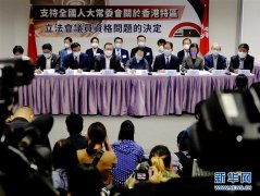 11月12日,在香港中环中心,十多位港区全国人大代表举行记者会。 新华社记者 王申 摄 十三届全国人大常委会第二十三次会议11日通过《全国人民代表大会常务委员会关于香港特别行政区立法会议员资格问题的决定》,港区全国人大代表和政协委员对此表示积极拥护...