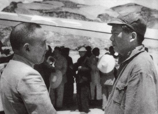 习近平总书记多次提及1945年毛泽东和黄炎培在延安窑洞关于历史周期率的对话,指出这番对话至今对中国共产党都是很好的鞭策和警示,强调要着力解决好其兴也勃焉,其亡也忽焉的历史性课题,增强党自我净化、自我完善、自我革新、自我提高能力。图为毛泽东与黄...