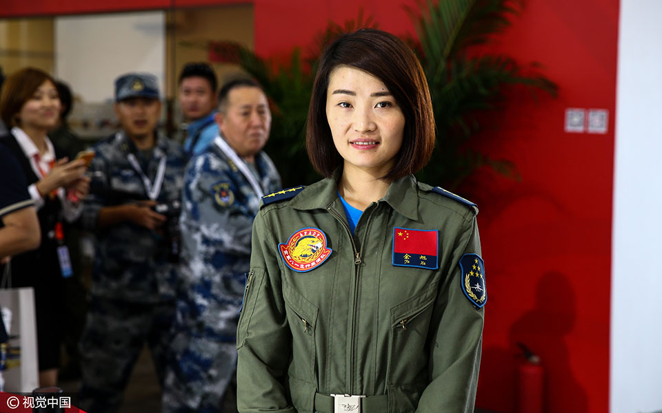 2016年11月1日,广东珠海,2016年珠海航展,八一飞行表演队见面会中的余旭。余旭代号为“金孔雀”,她是我国具备三代战机飞行资格的4名女飞行员之一。