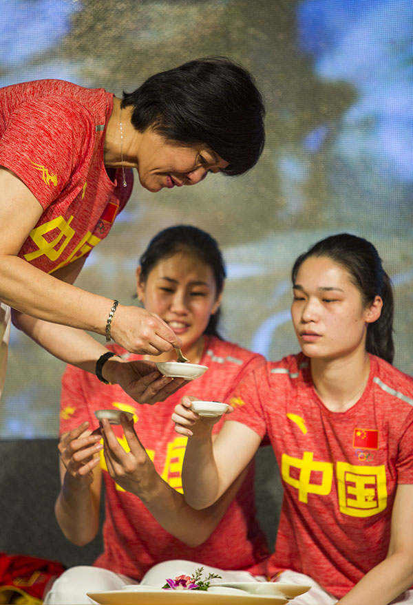 郎平和女排队长惠若琪。