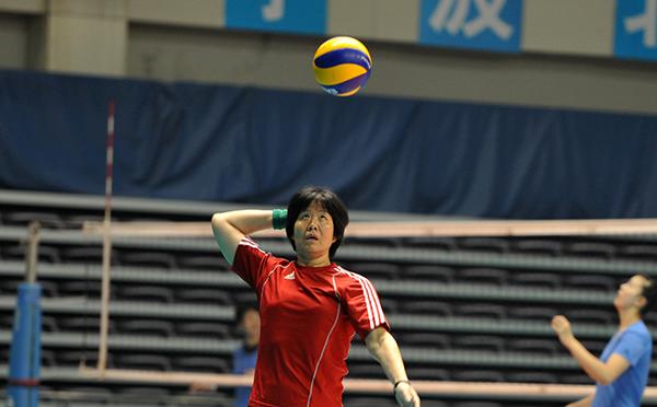 训练中,郎平总是亲力亲为。