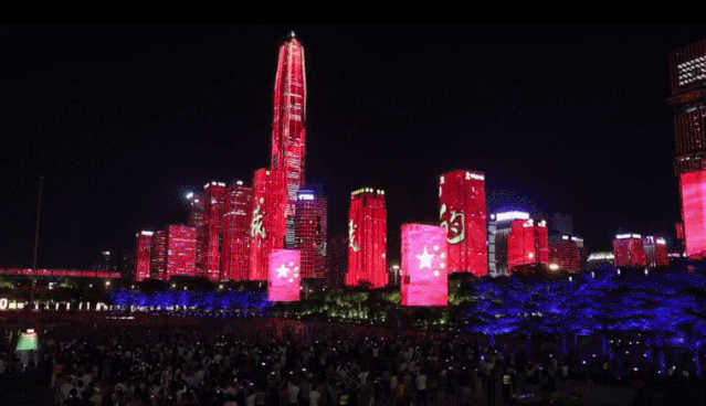 与此同时,全国26个省份48个城市84个地标建筑集体点亮,向祖国高调“示爱”,更有网友通过瓢虫一号卫星把对祖国的表白传递到太空! 一起来看看吧: 深圳 上演国庆版绝美震撼灯光秀! 据南方都市报“深圳大事件”报道,昨夜的深圳,又一次被满眼灯光点亮!没错,深圳中心区灯光秀全新“特别版”又跟大家见面了! 千万不能错过的现场视频↓↓↓ 瞧这磅礴的气势 看这璀璨的夜景
