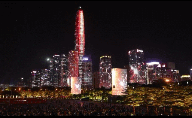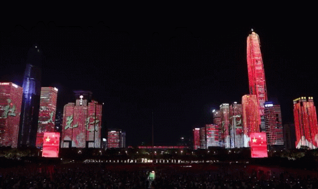 开篇满眼的国旗红 点亮深圳今夜最亮的一道风景线 随着倒数五个数,绚丽的光影彩墨 幻化为鹏城的山、林、湖…… 翱翔天际的大鹏 播撒下无数璀璨的星光 点亮这座活力之都