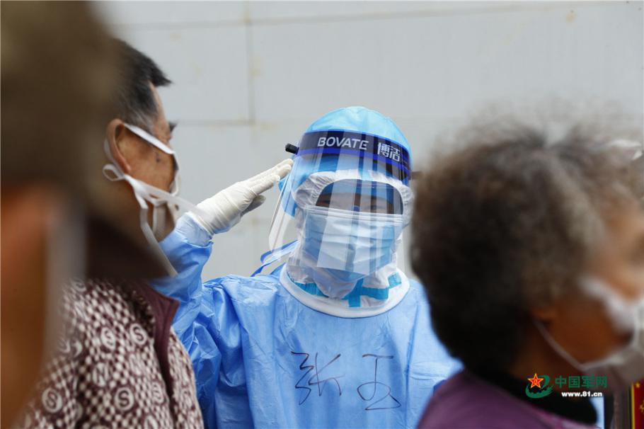 医护人员向表达感谢的患者回敬军礼。王皓宇 摄