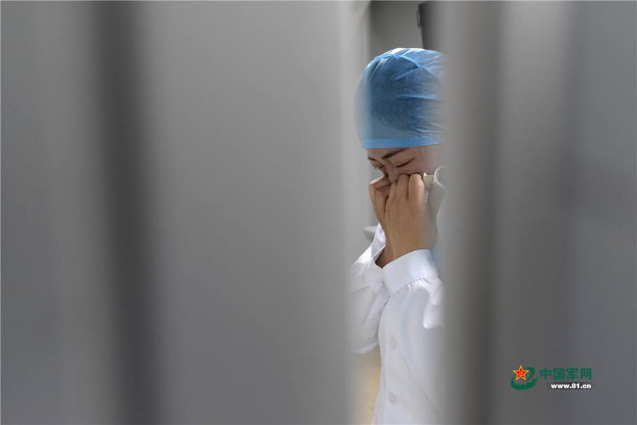 吴亚玲与家人通完电话后忍不住落泪。解放军报记者范显海 摄
