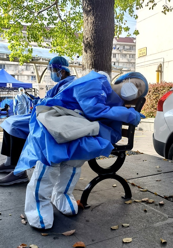 图片背景:这位医生身体不适,但依然坚守在抗疫第一线,上午在其他小区,中午赶到我们小区。我们为他们准备了盒饭,她一口没吃,下午继续战斗。我没不忍心惊动她,但必须留下这动人的一幕。 责编晓歌