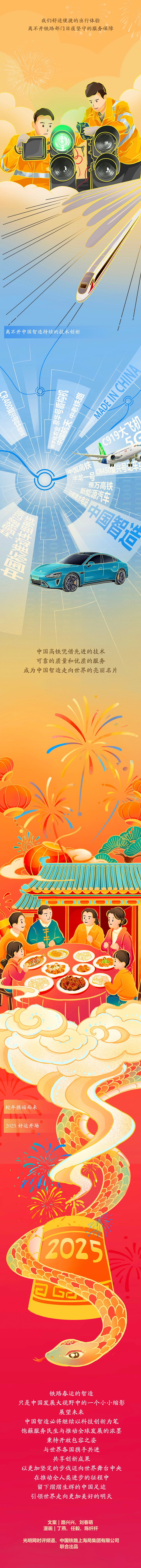 春节,是团聚的时刻。此时,游子们正跨越千山万水奔赴家人的怀抱。 一个“流动的中国”,一个热气腾腾的中国,正是经济社会活力的生动注脚,展现出人口的大规模有序流动。随着我国自主创新能力的不断增强,中国“智造”正成为铁路部门服务旅客的惊艳“法宝”,为春运注入全新活力。 今天,我们乘上这趟开往春天的高铁,在归家的途中,感受经济社会的发展变迁,观察中国智造的创新实力。