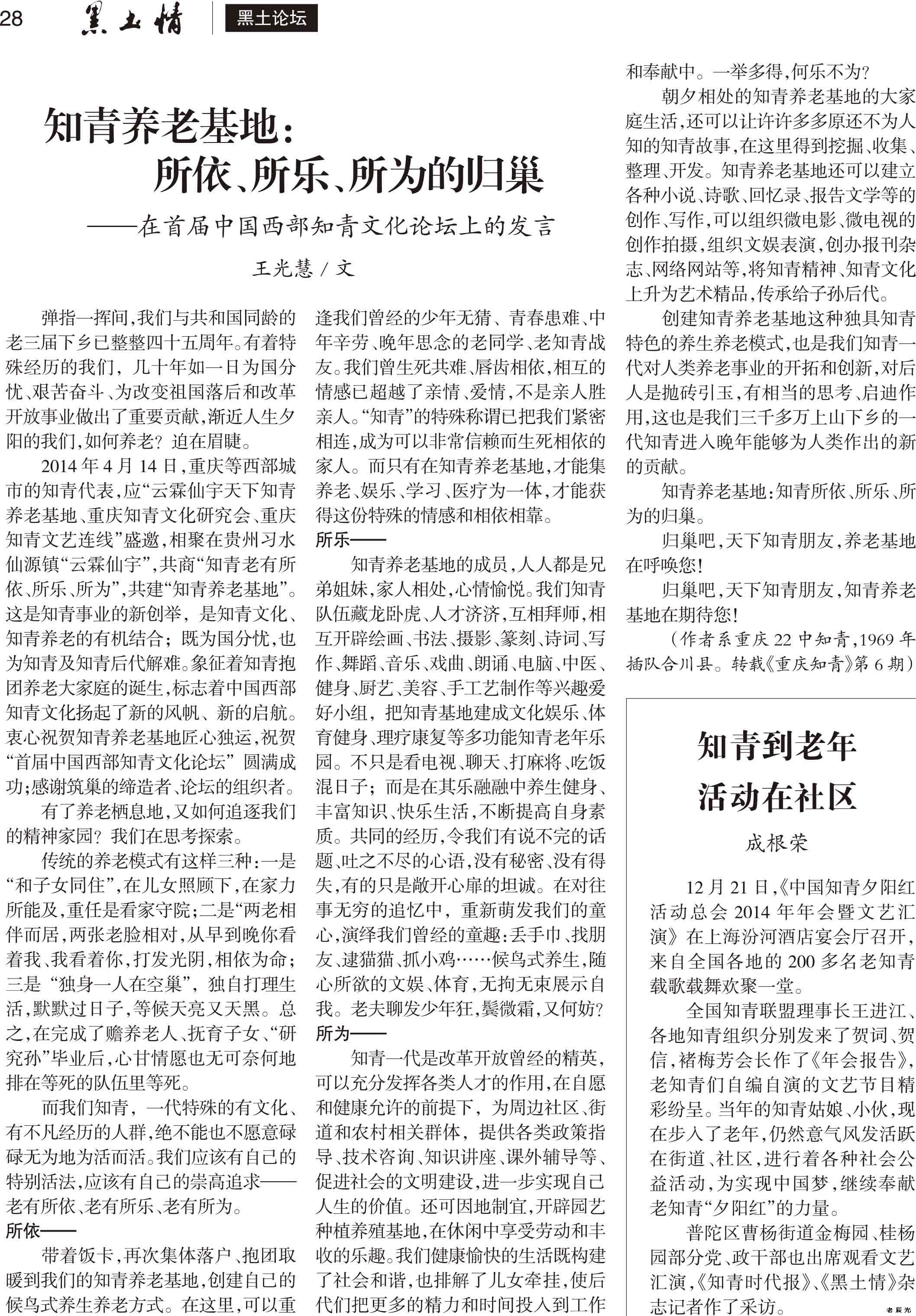 第7节 知青养老基地:所依所乐所为的归巢/知青到老年活动在社区