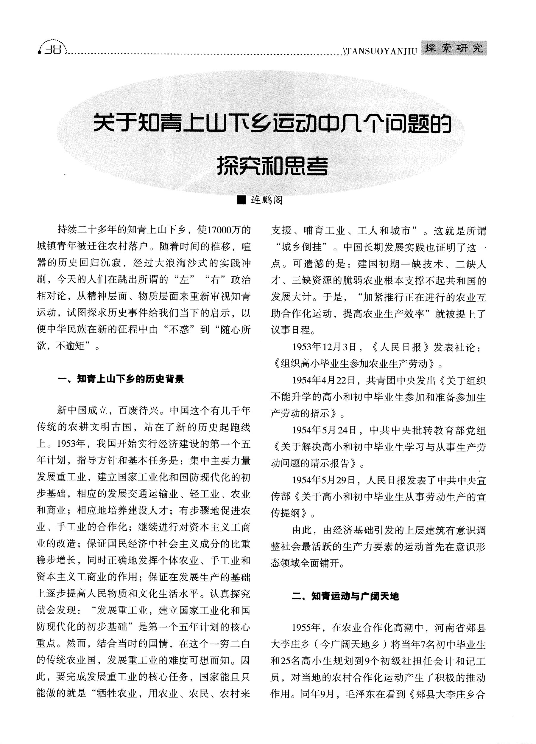第1节 关于知青上山下乡运动中几个问题的探究和思考