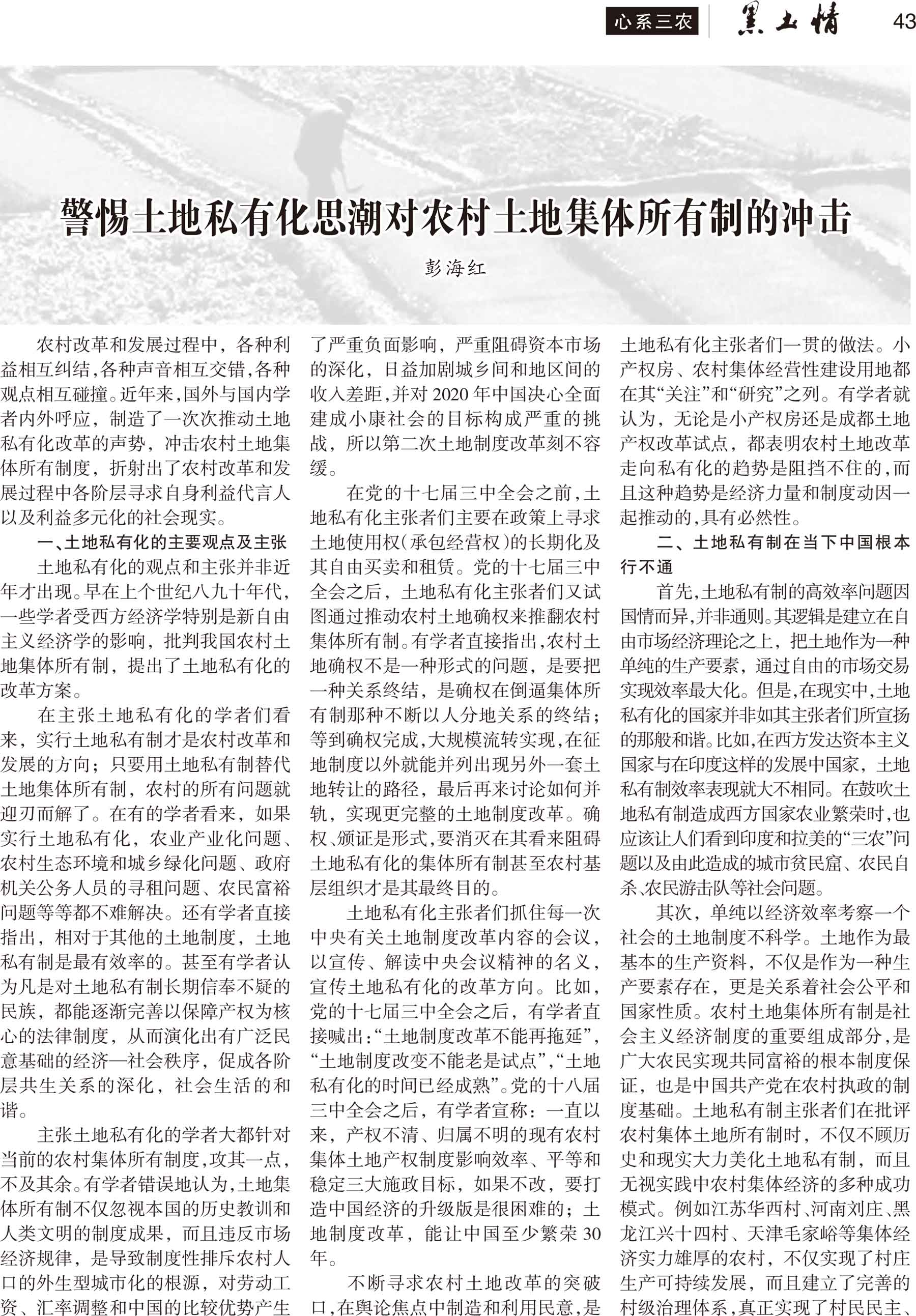 第1节 警惕土地私有化思潮对农村土地集体所有制的冲击