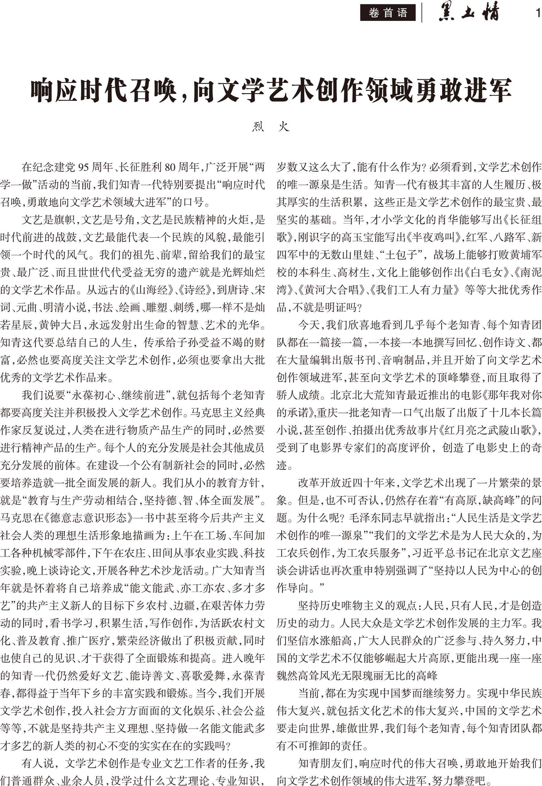 第1节 卷首语 响应时代召唤 向文学艺术创作领域勇敢进军