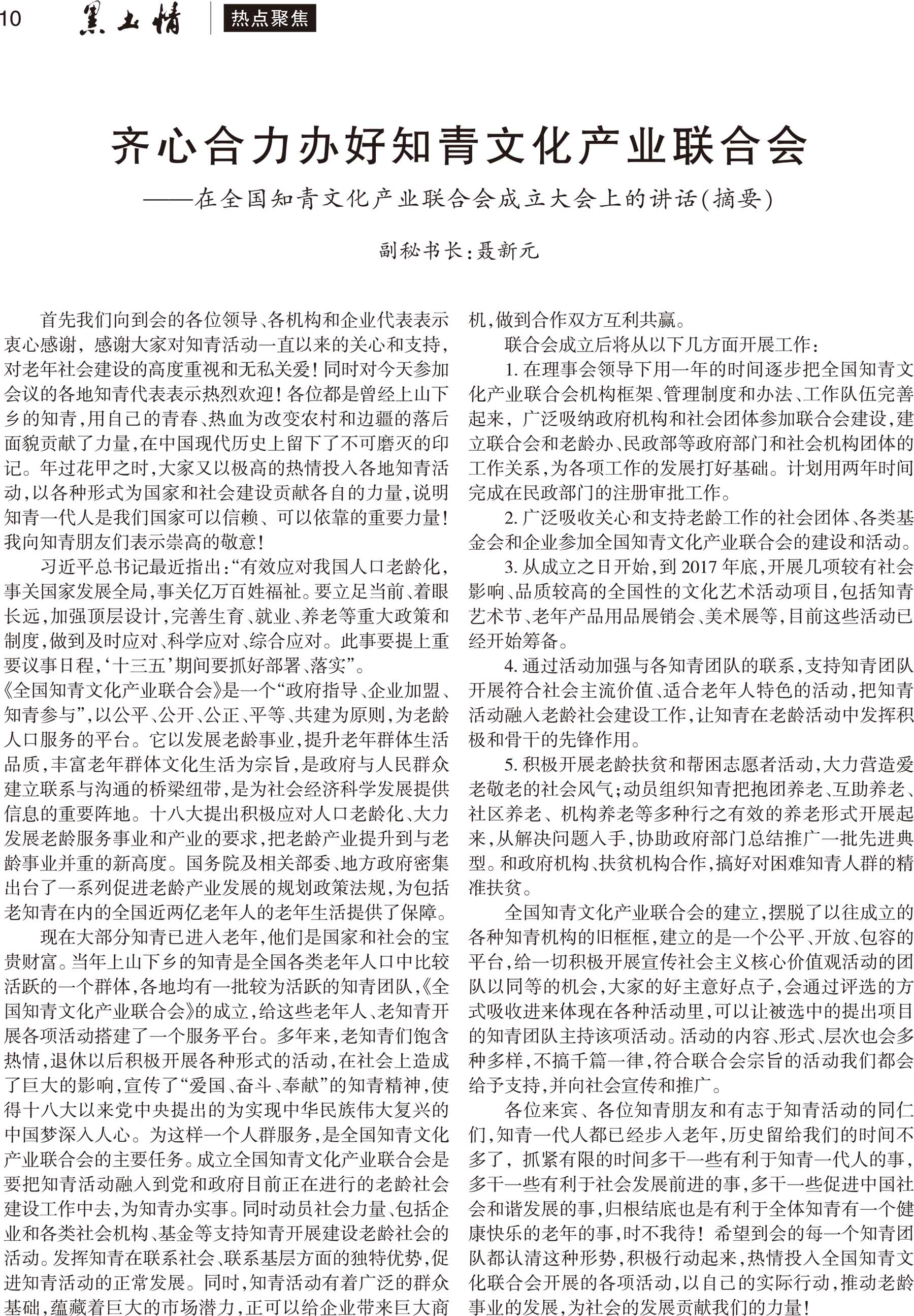 第8节 齐心合力办好知青文化产业联合会
