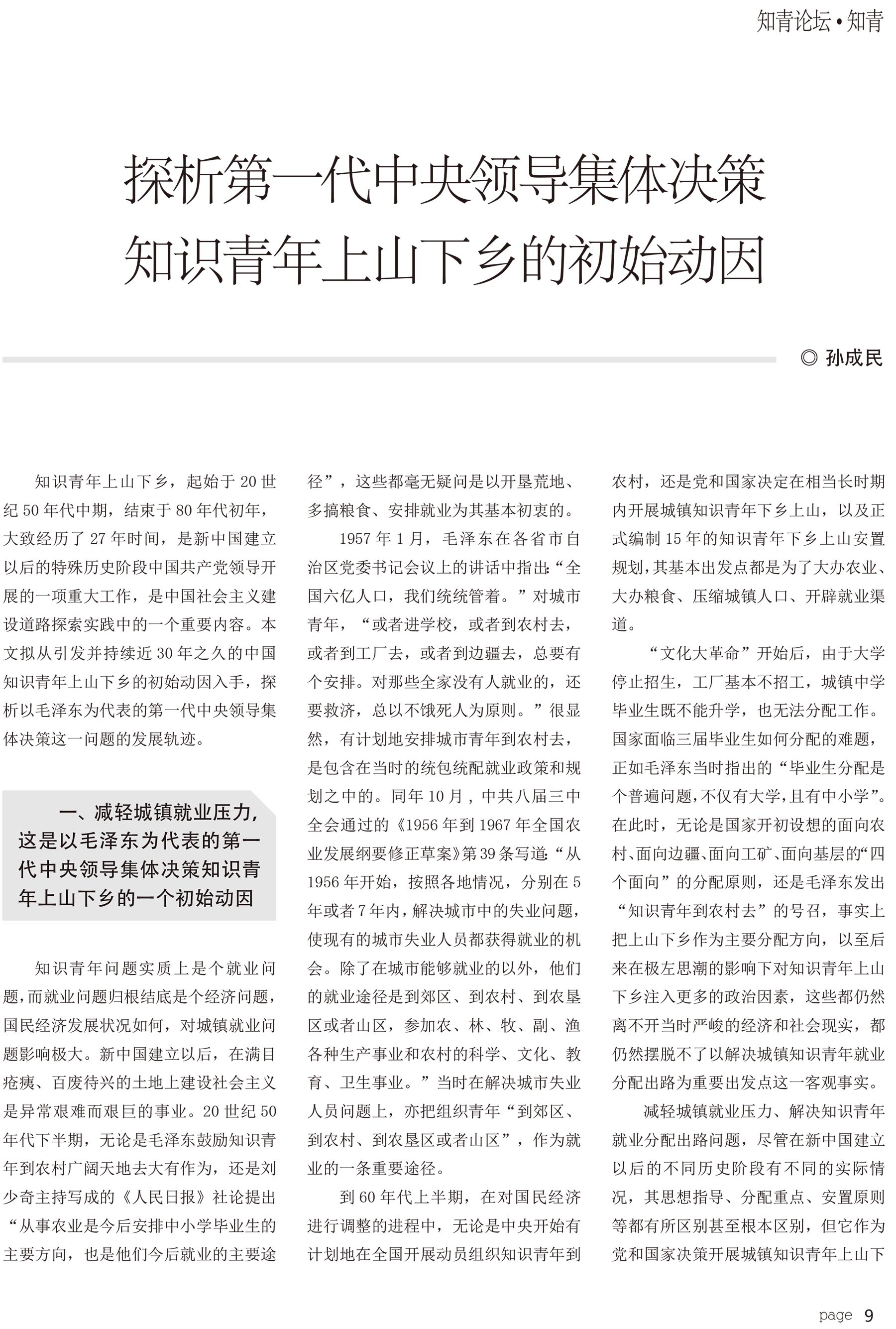第1节 探析第一代中央领导集体决策知识青年上山下乡的初始动因