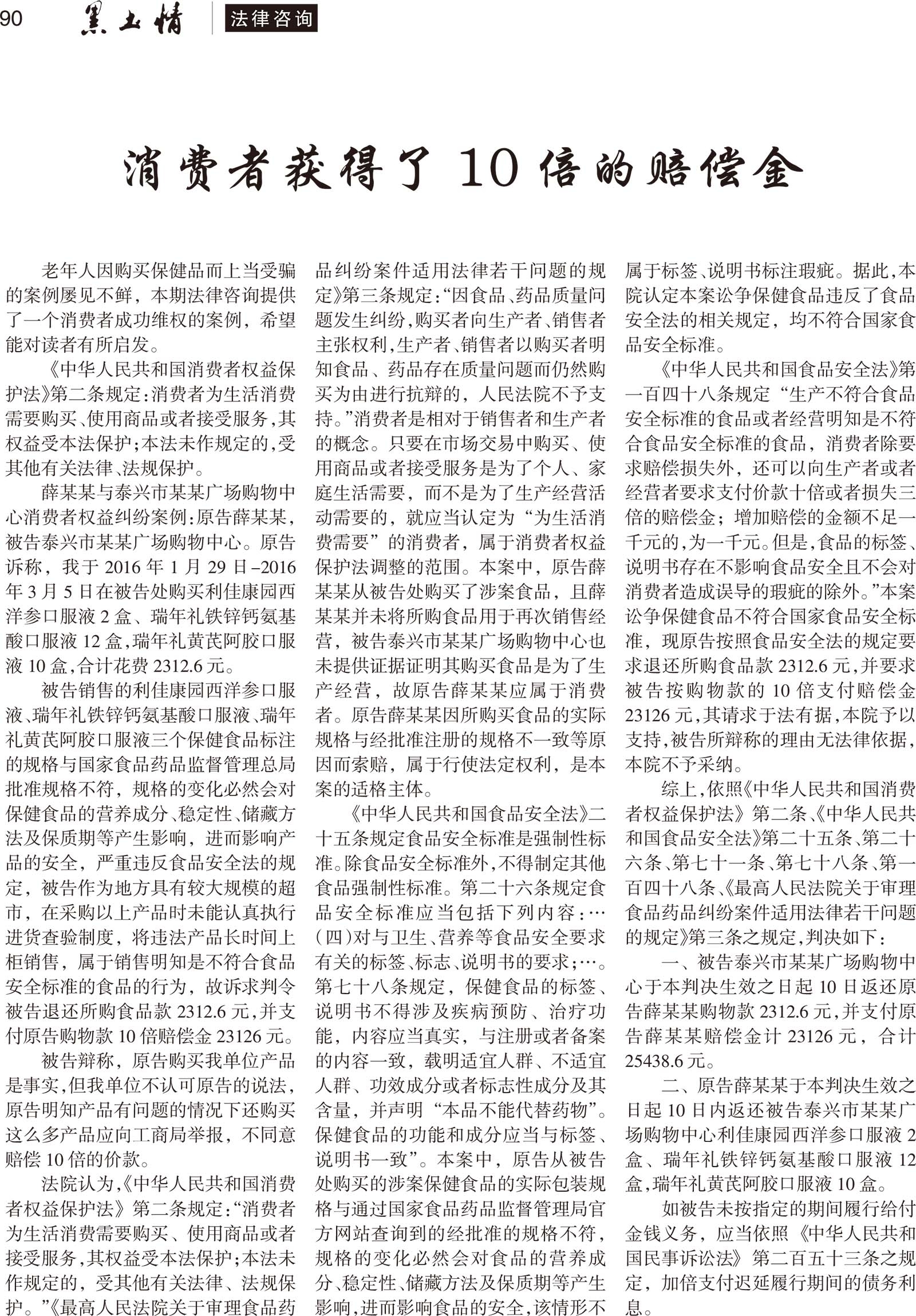 第1节 消费者获得了10倍的赔偿金