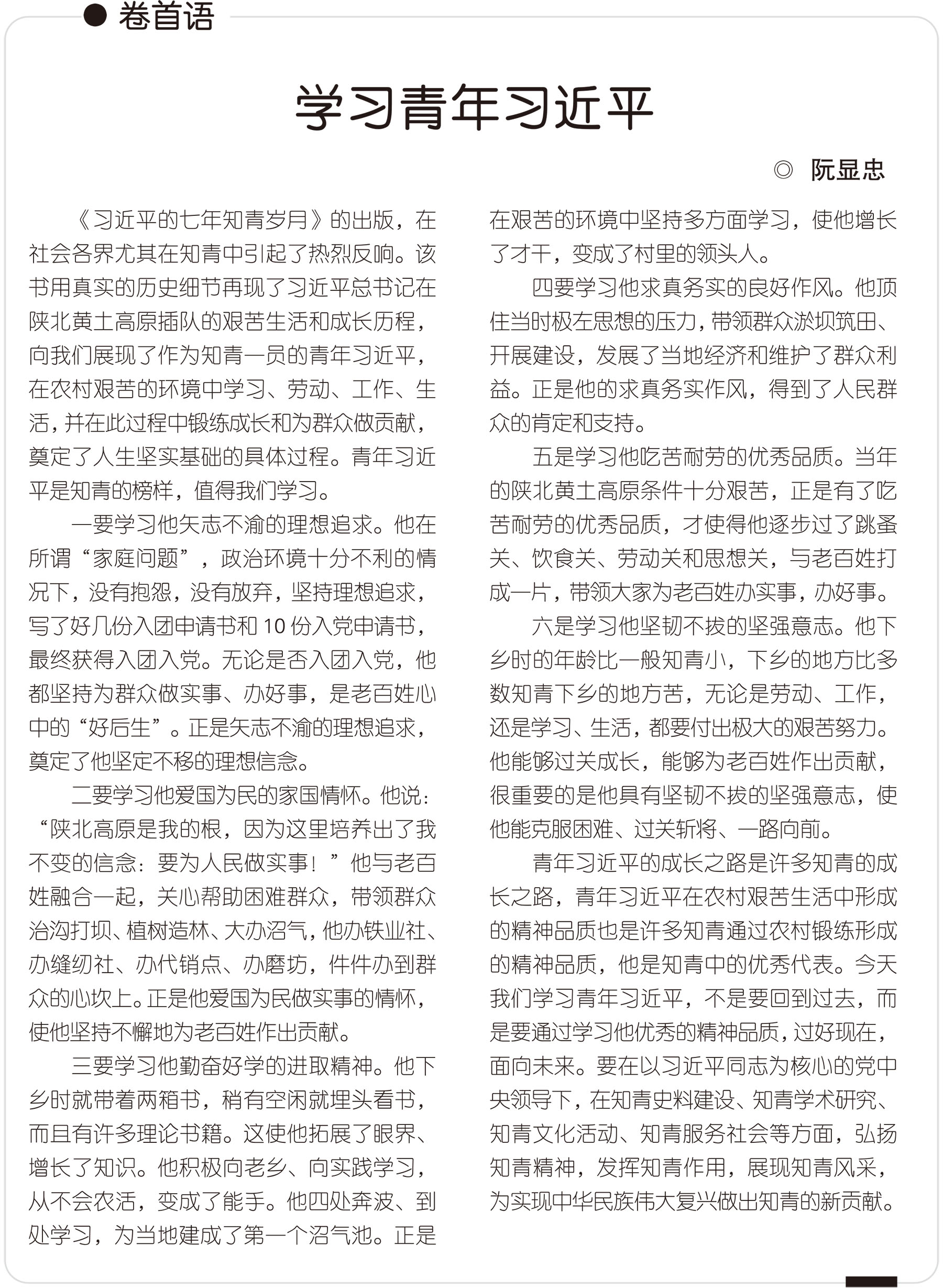 第1节 卷首语 学习青年习近平