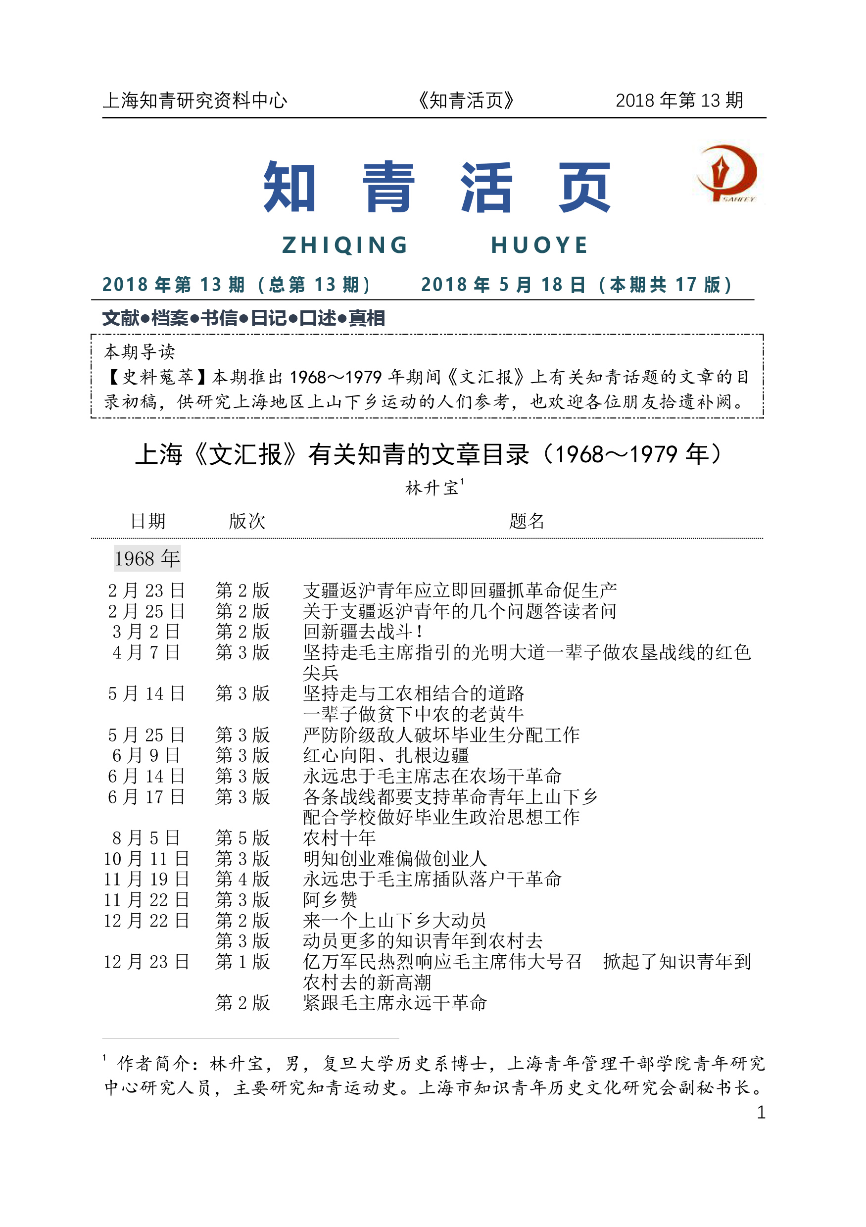 第1节 第1页 上海《文汇报》有关知青的文章目录