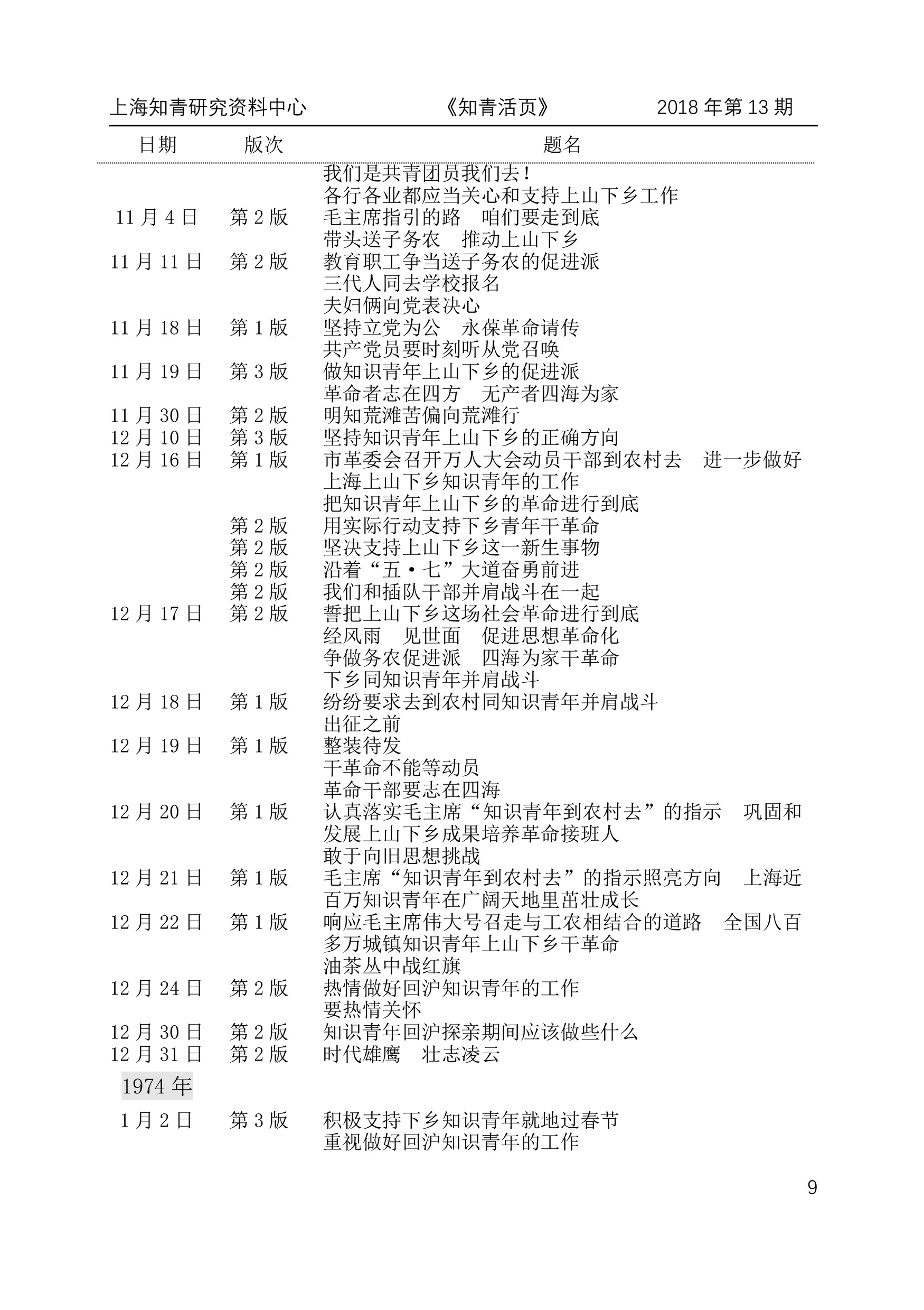 第9节 第9页 上海《文汇报》有关知青的文章目录