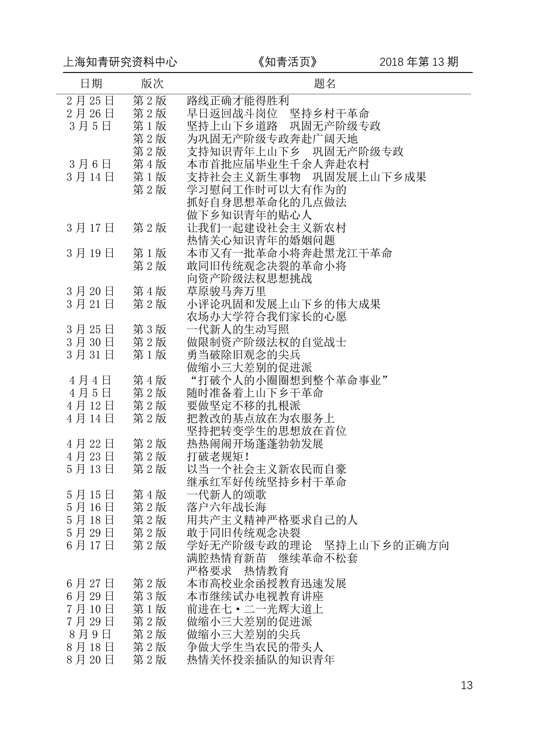 第13节 第13页 上海《文汇报》有关知青的文章目录