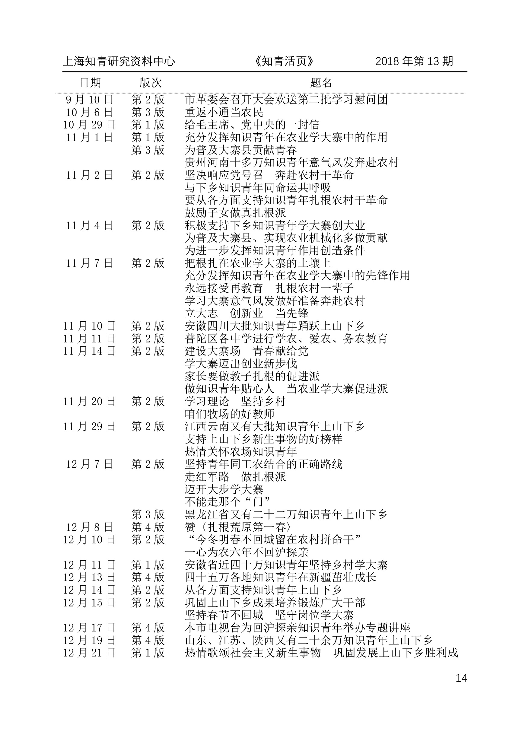 第14节 第14页 上海《文汇报》有关知青的文章目录