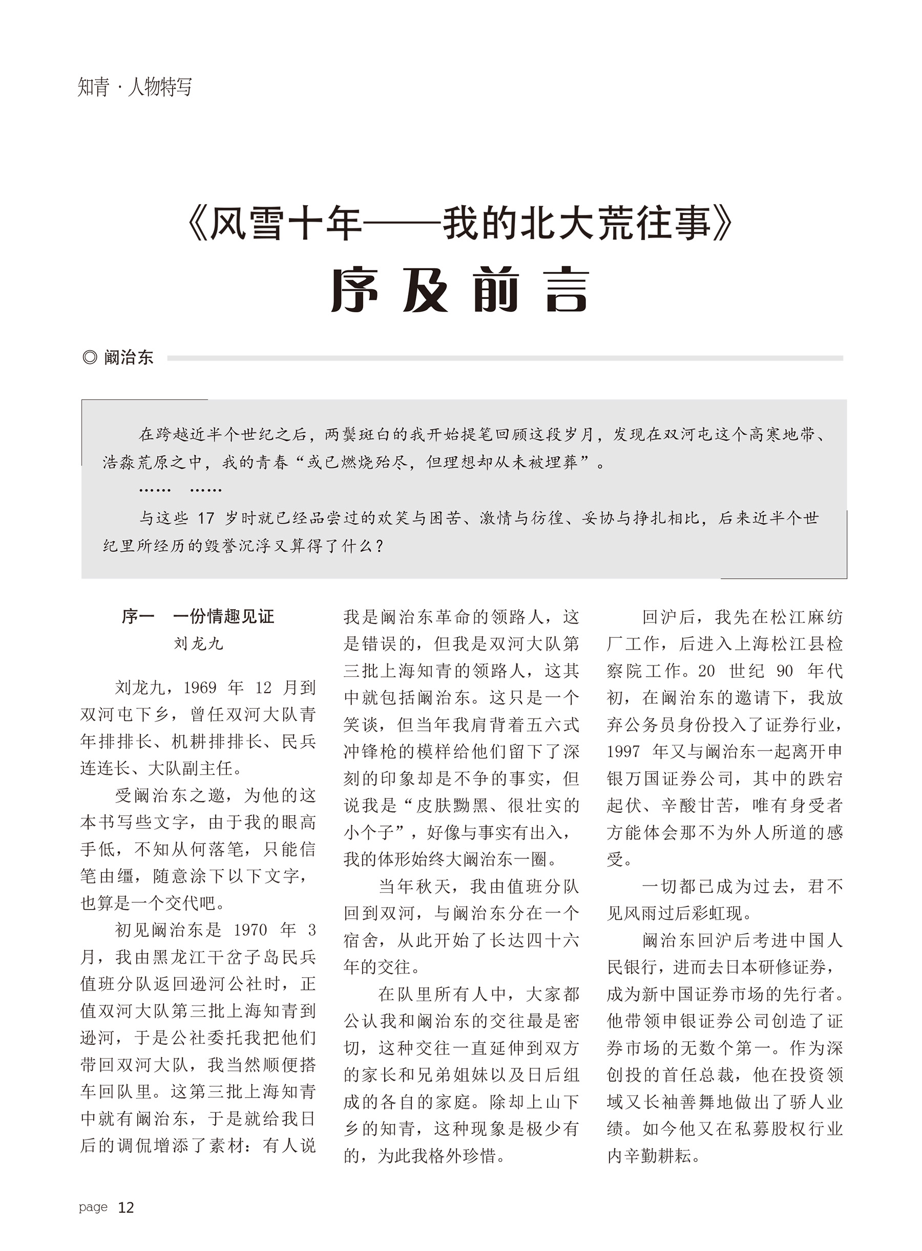 第1节 《风雪十年》 序及前言