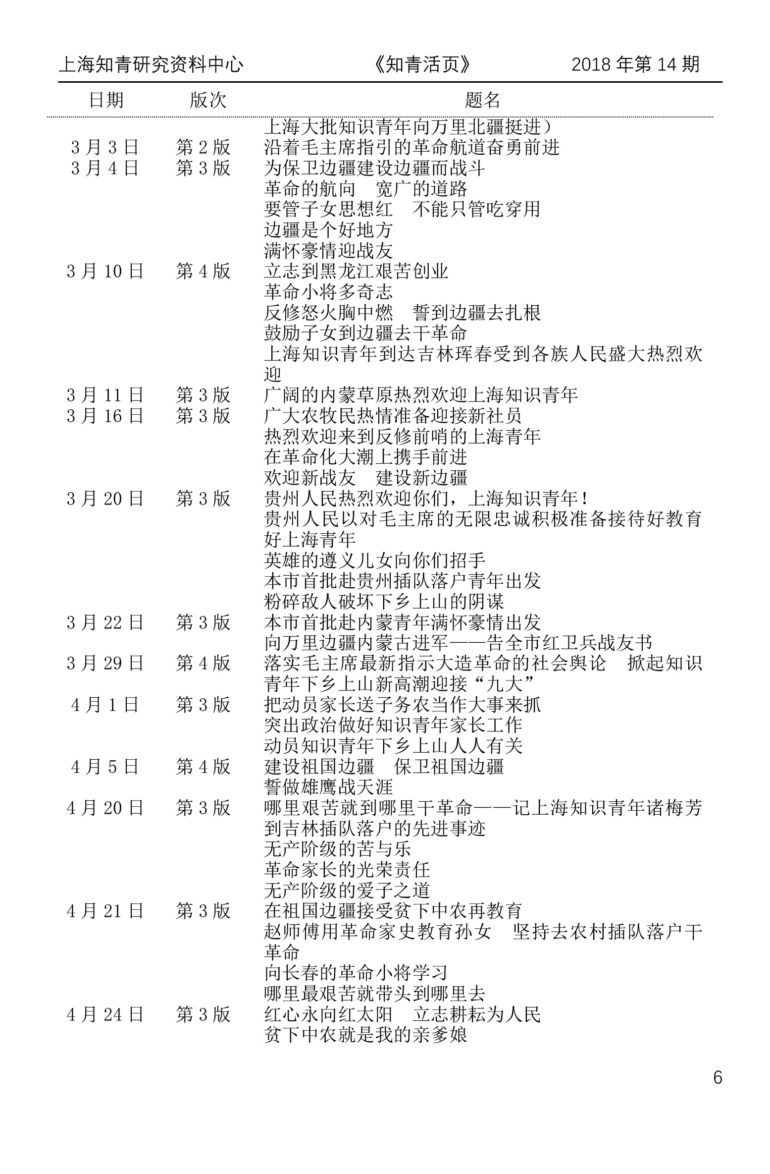 第6节 上海《解放日报》有关知青的文章目录(6)