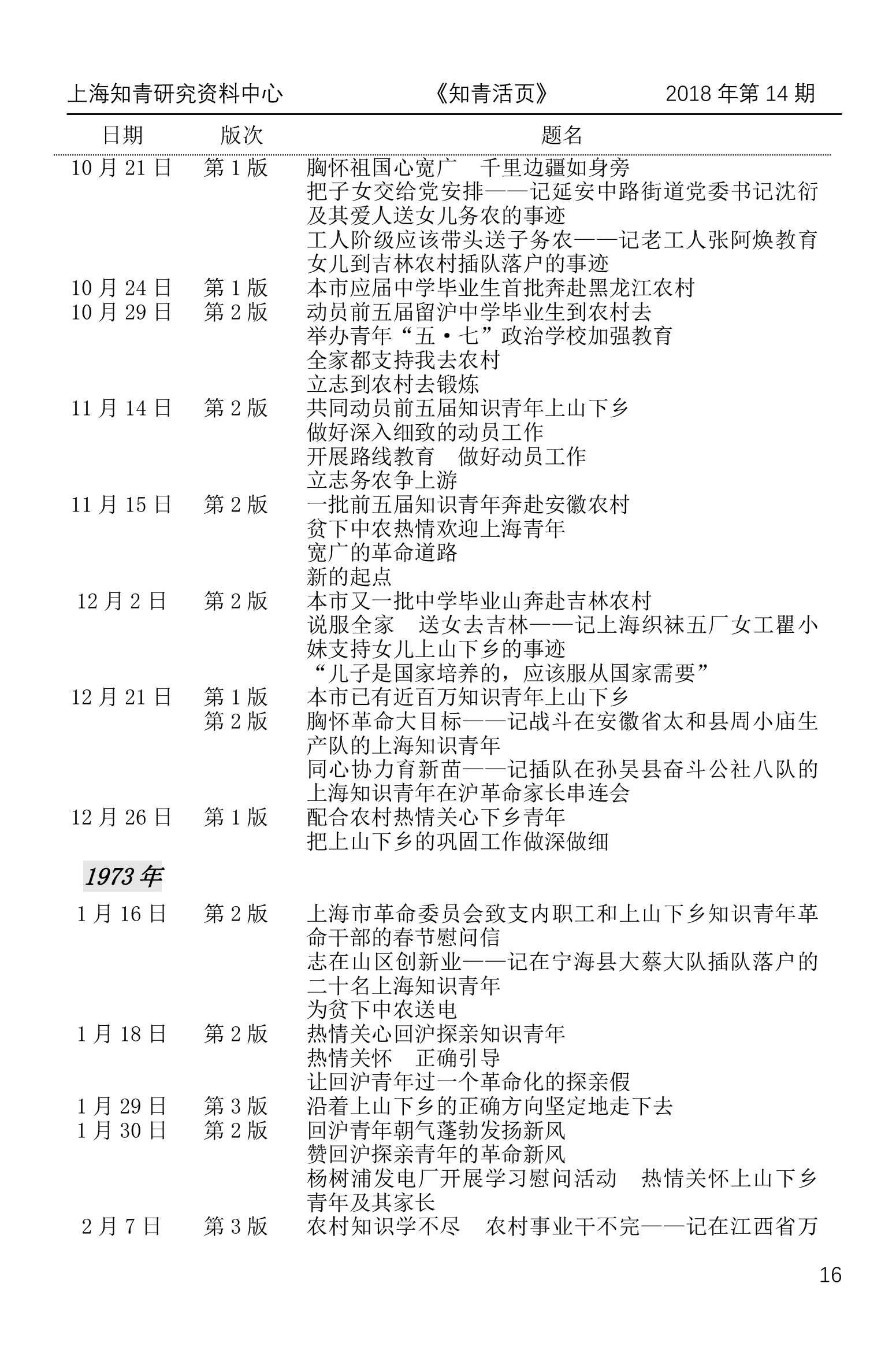 第16节 上海《解放日报》有关知青的文章目录(16)