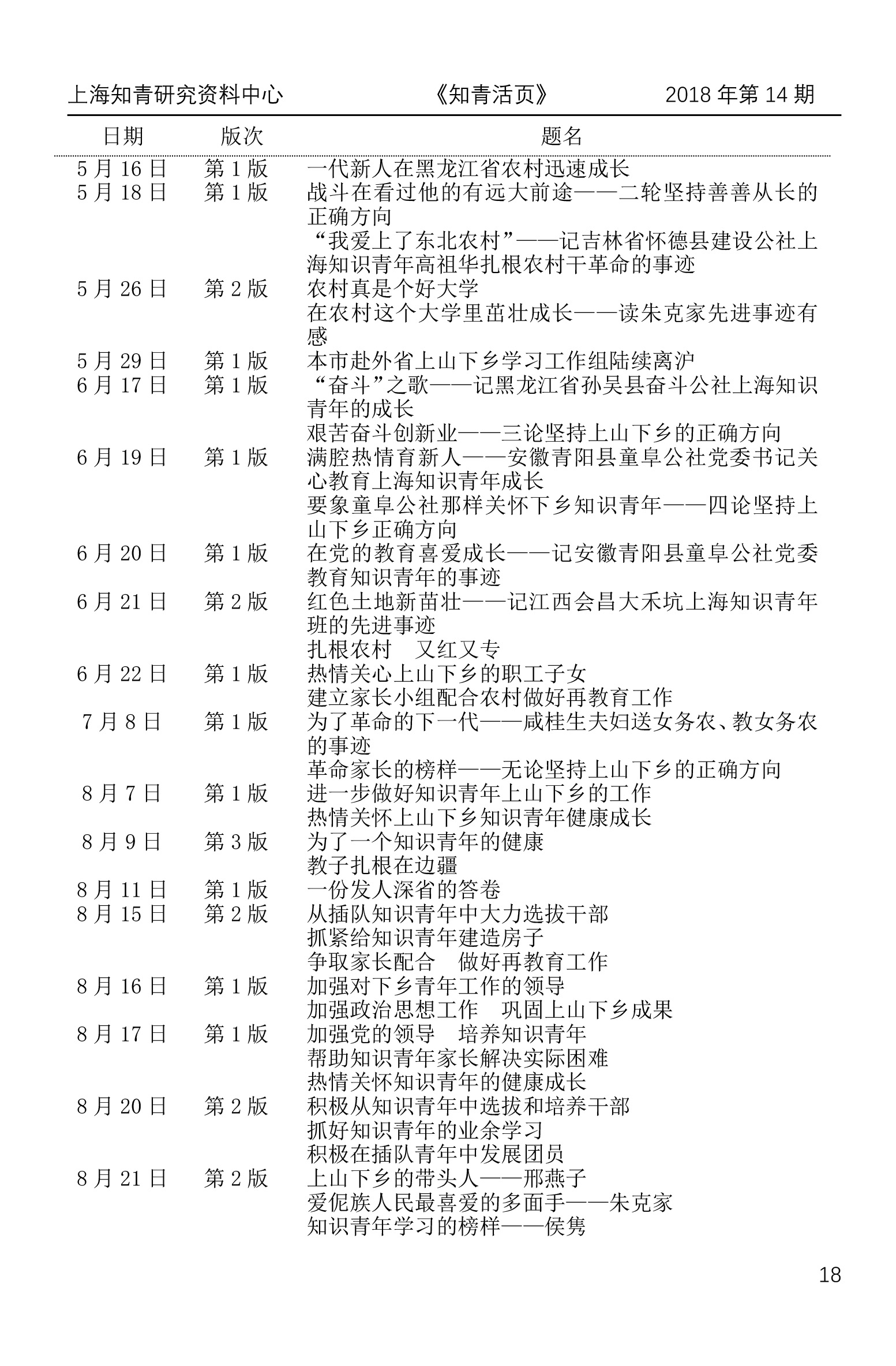 第18节 上海《解放日报》有关知青的文章目录(18)