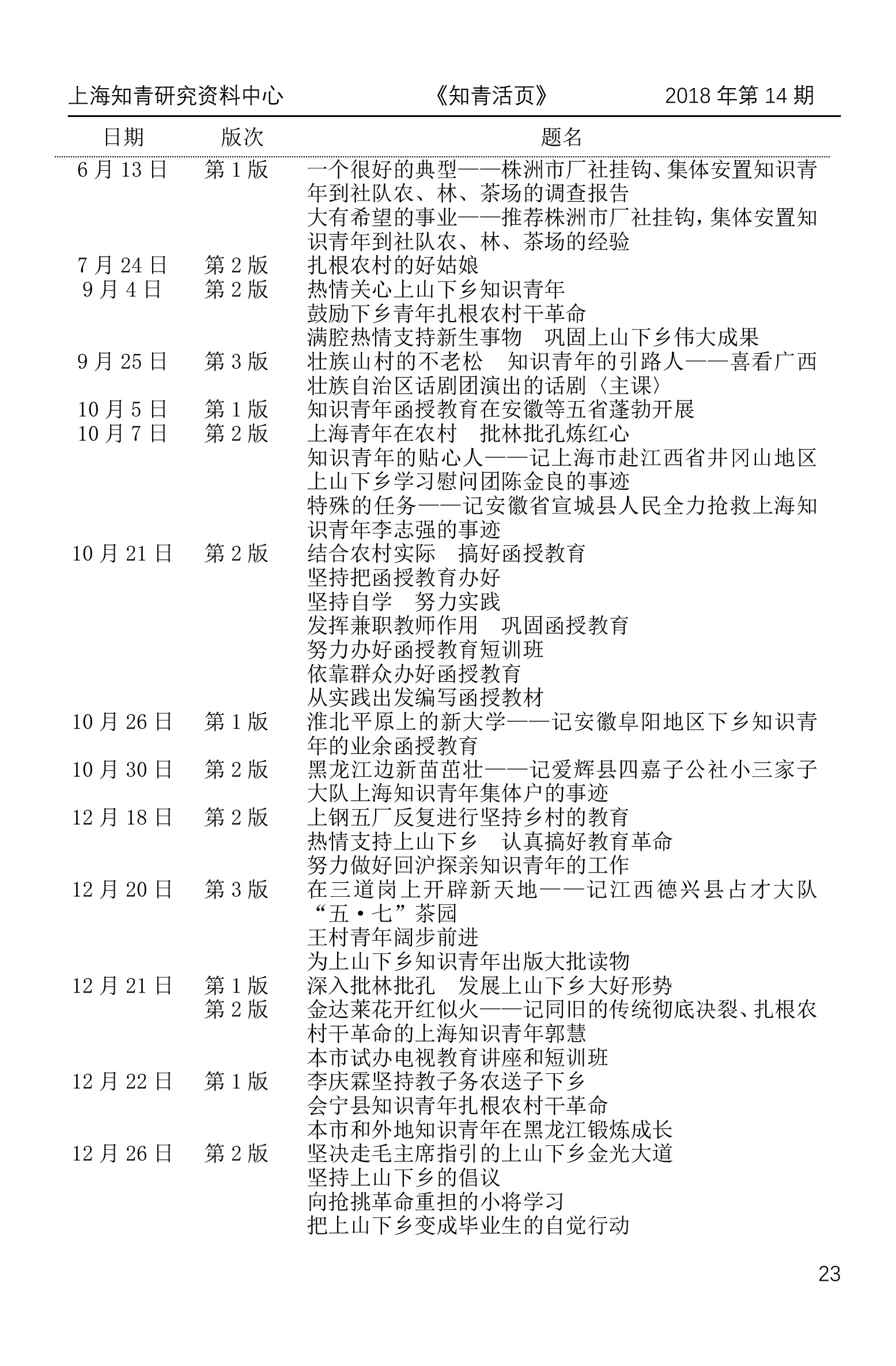 第23节 上海《解放日报》有关知青的文章目录(23)