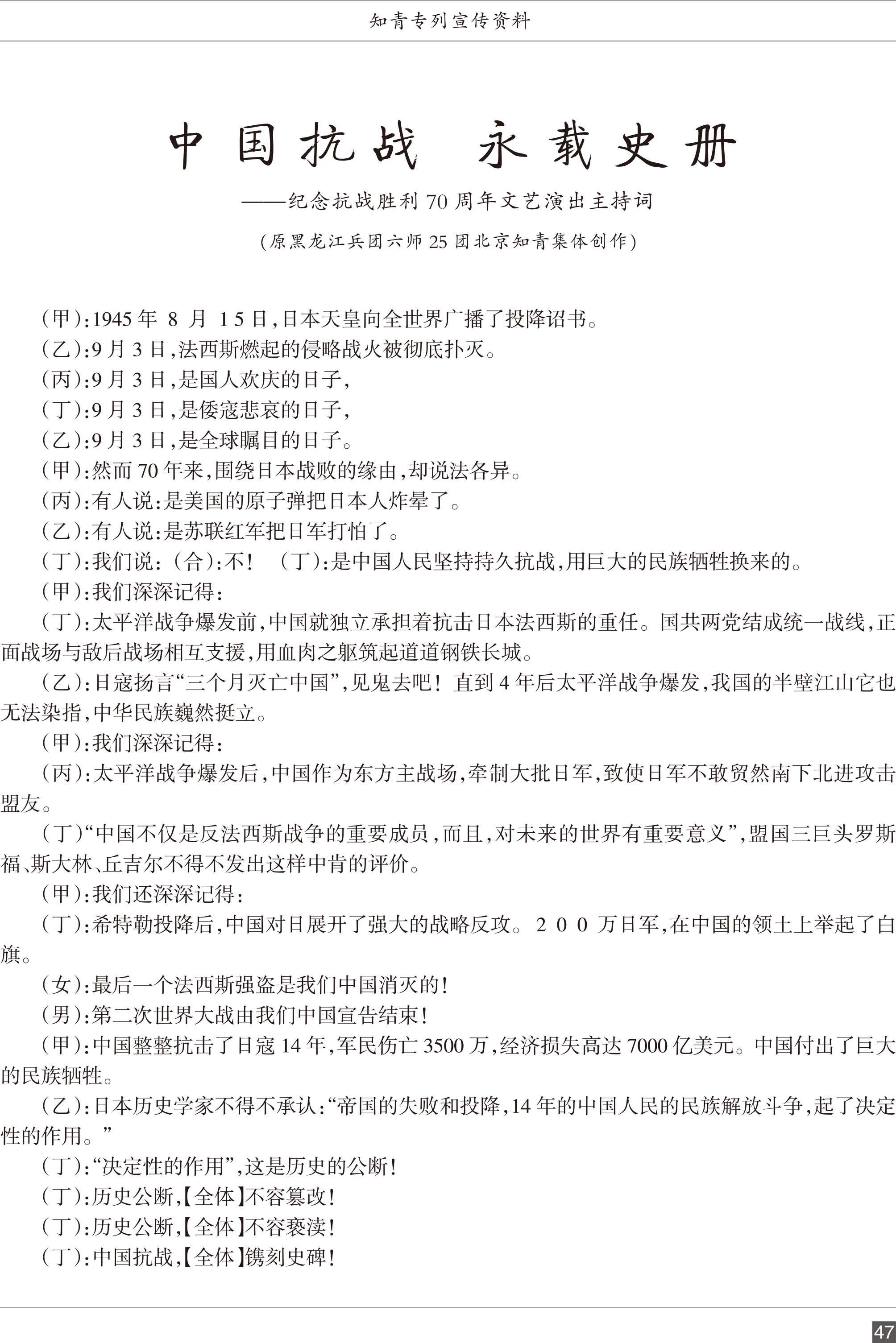 第10节 中国抗战 永载史册(演出主持词)