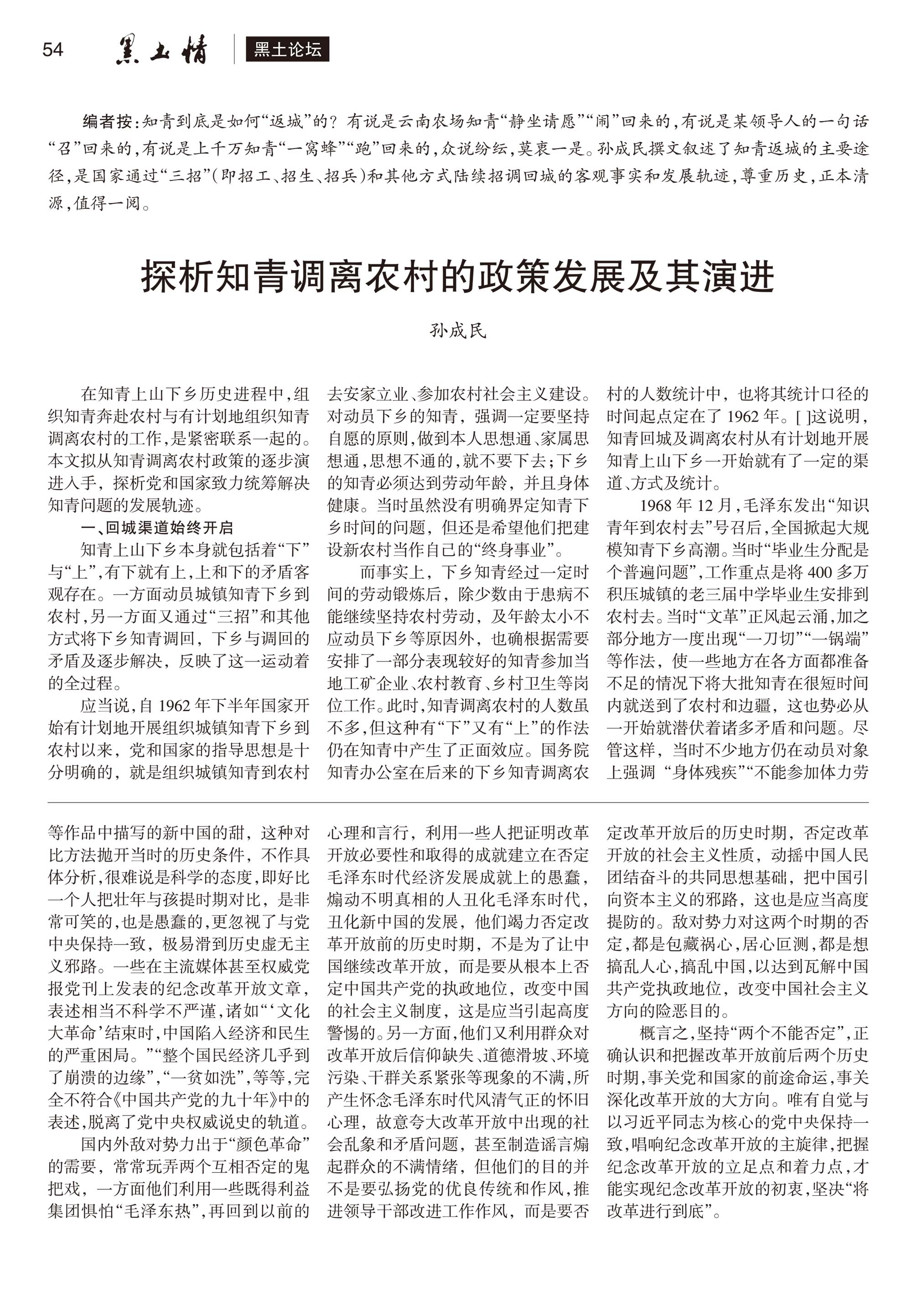 第3节 探析知青调离农村的政策发展及其演进
