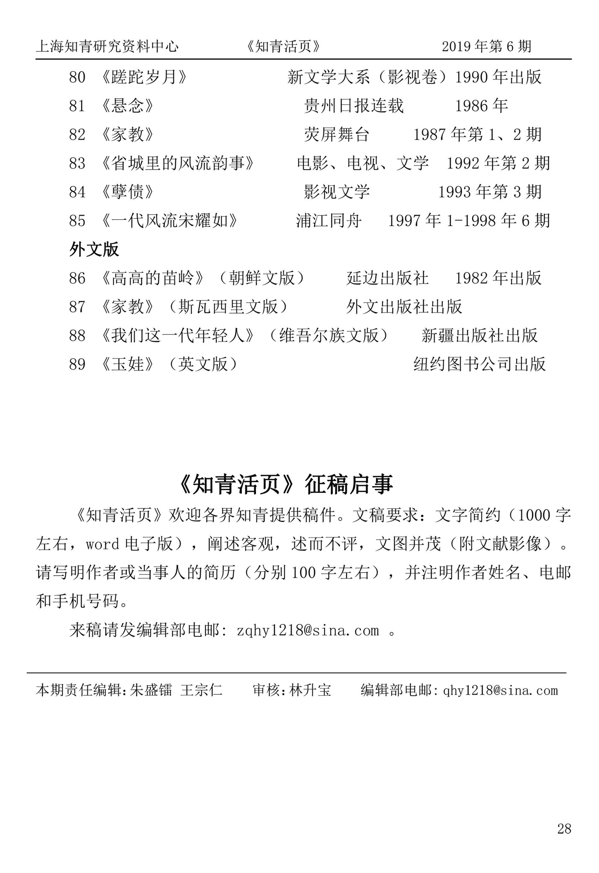 《知青活页》2019年第6期