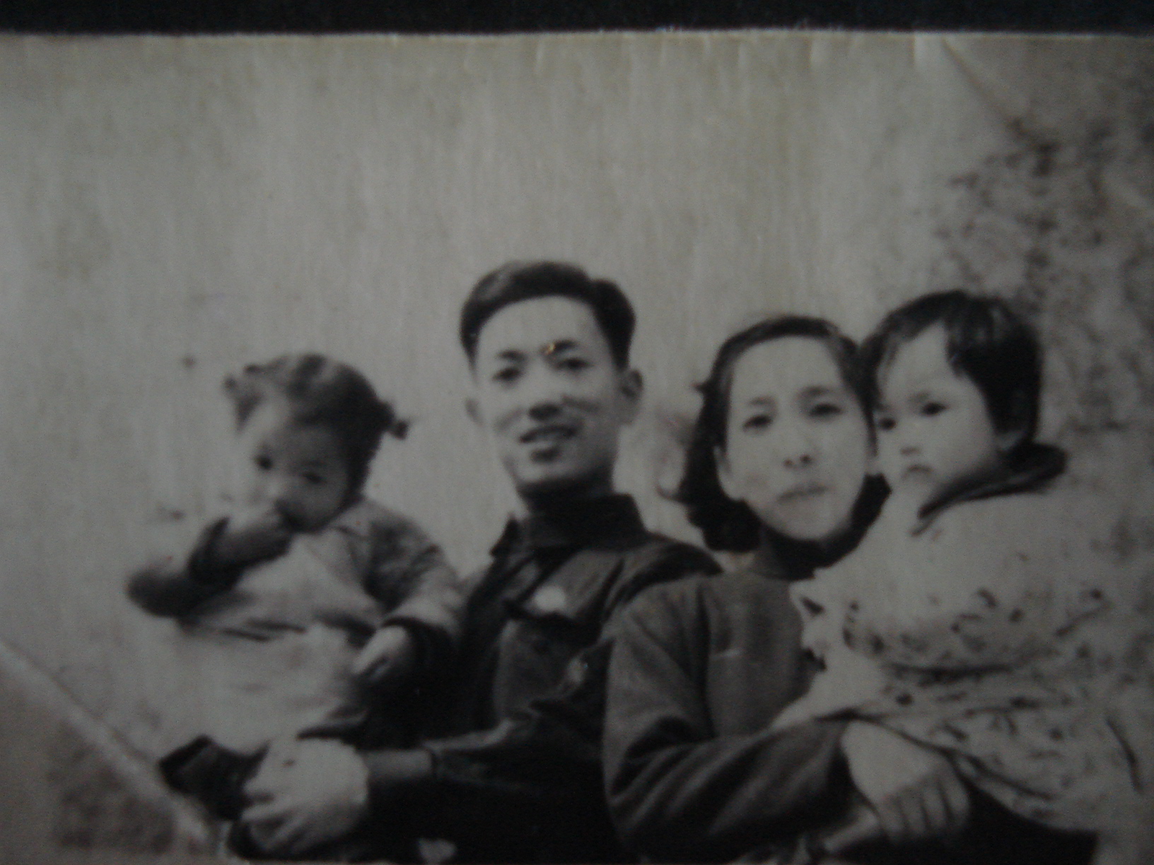 (母亲抱着一岁的妹妹,父亲抱着三岁的我)
