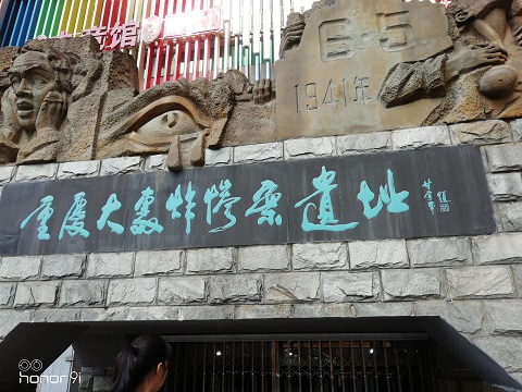 离解放碑两条街的不远处,是重庆大轰炸遇难者遗址。曾经有几千同胞在 日军大轰炸中窒息而死。