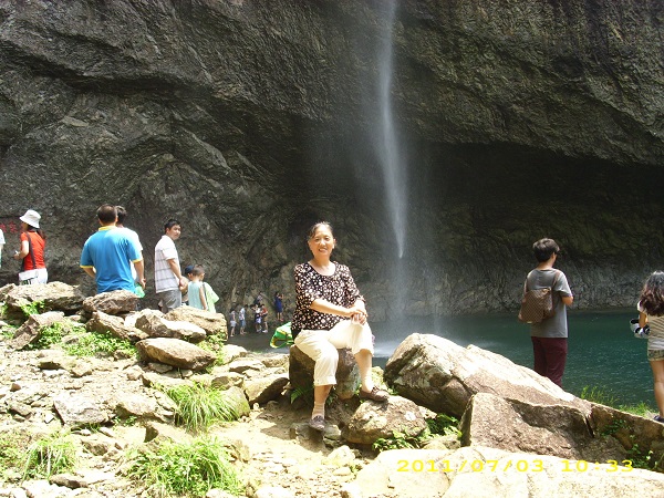 我买了门票,进入景区,感到了与以前去过的庐山井冈山武夷山都不同的感受。虽然有些山峰也有武夷山那样的丹霞山地貌,但是形态各异造型独特,雁荡山也留下了许多文人墨客的足迹和诗篇,它的历史悠久,景色优美,瀑布飞流,山势奇峻,在炎炎夏日,溪流边喝山洼里一阵阵清凉,让久居大城市的人感到分外舒爽。