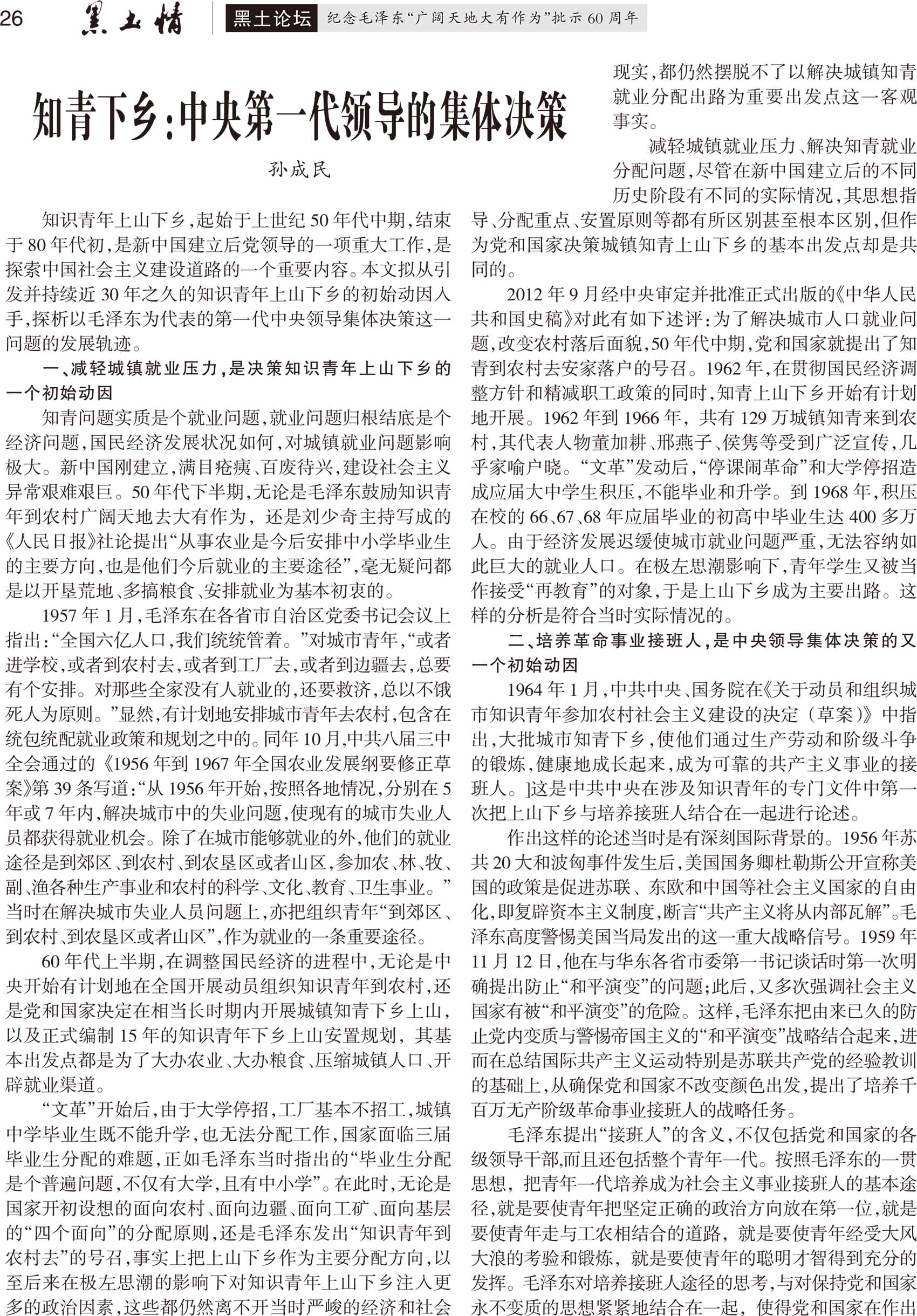第1节 知青下乡:中央第一代领导的集体决策