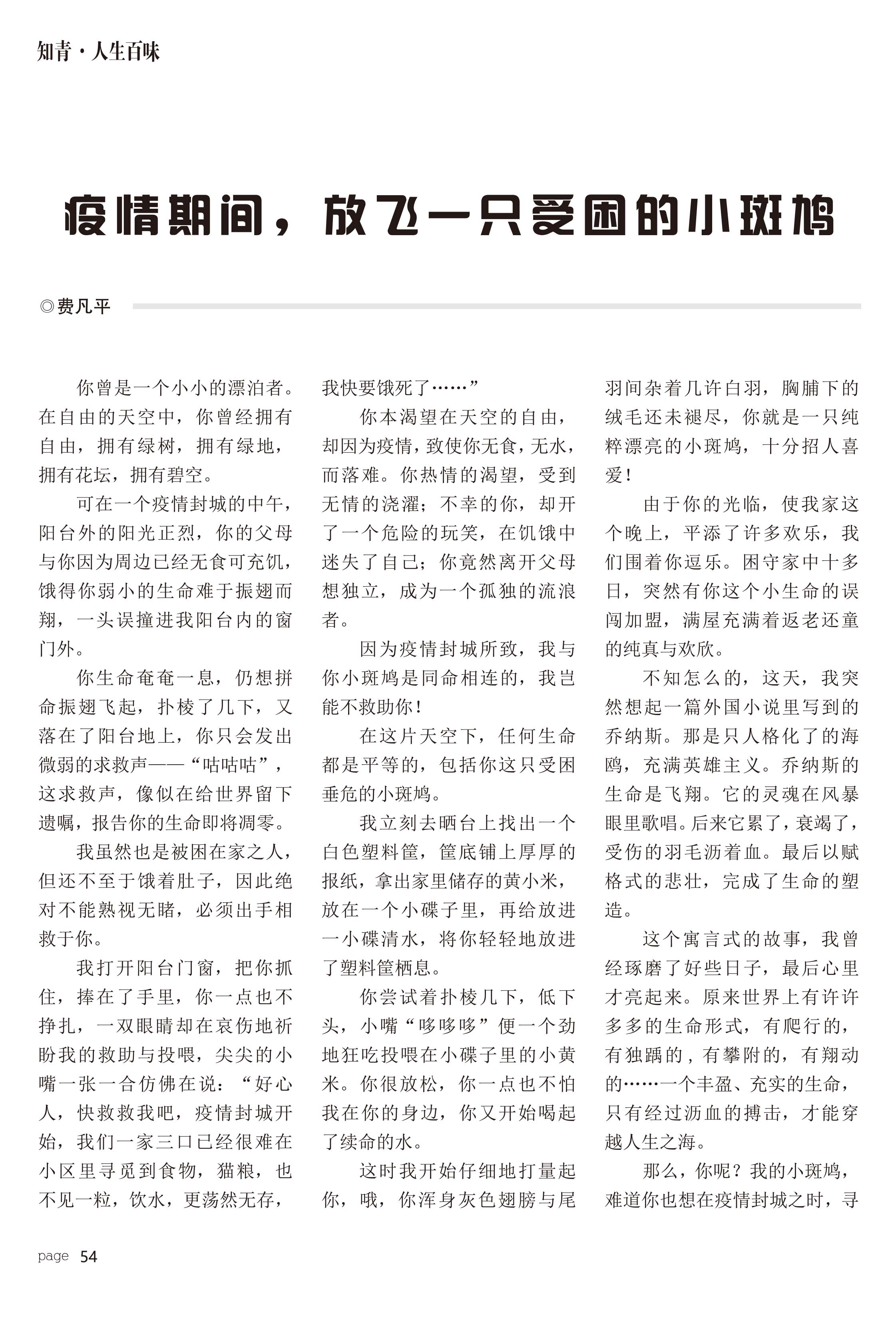 第10节 疫情期间 放飞一只受困的小斑鸠