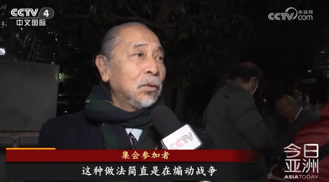 15日晚上,日本民众再次聚集在首相官邸前,强烈要求高市早苗立即撤回涉台错误言论。