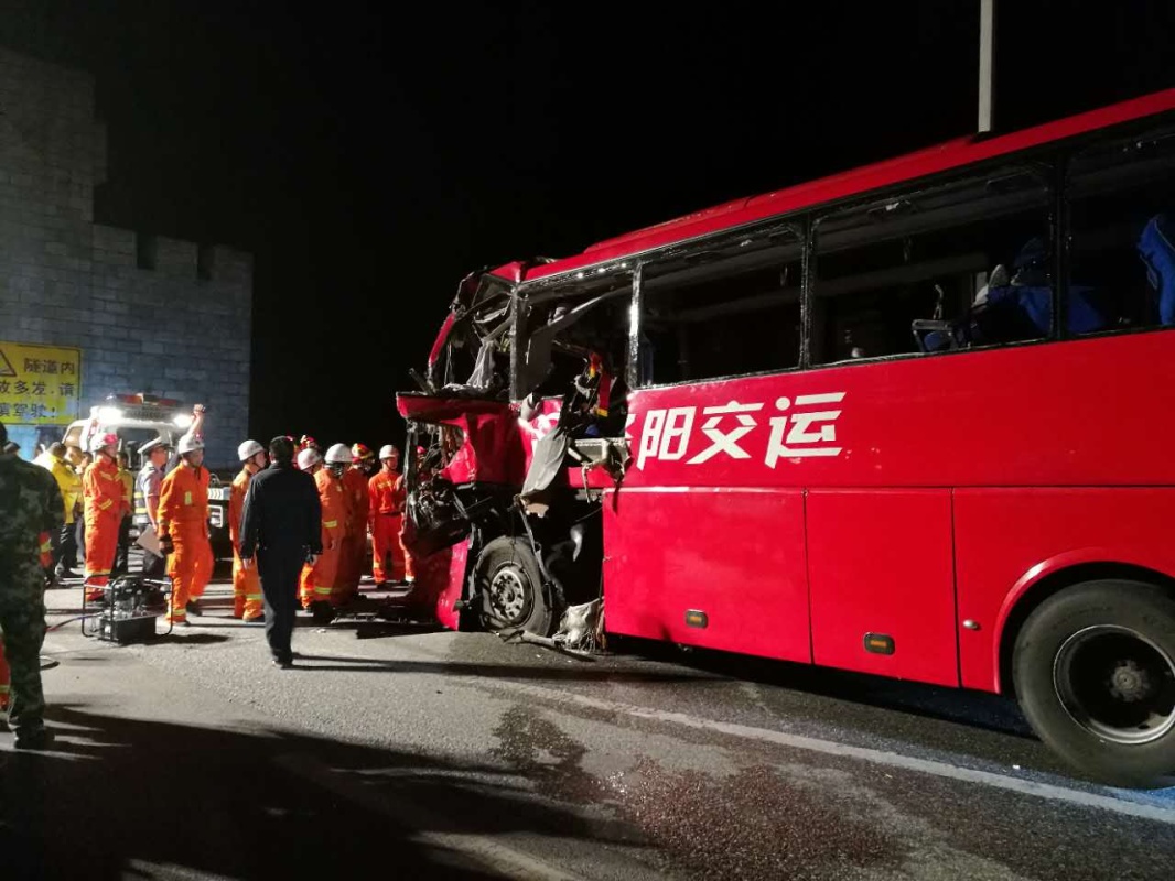 事故现场大巴车已被遮盖。新华社记者郑昕摄