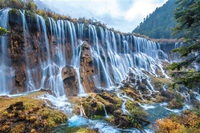 2013年10月20日,四川阿坝,九寨沟景区的“诺日朗瀑布”景观,海拔2365米,瀑宽270米。1986年版电视剧《西游记》的拍摄地之一。 图/视觉中国