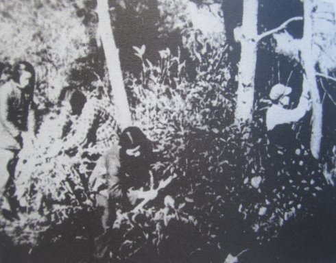 采伐林木是垦荒队员们的又一重要工作,他们中的一支队伍开到了原始森林,去砍伐建设房屋和粮仓所需要的木材。队员们上山后在斜坡上搭起木房,这就是他们的住屋。深夜,森林里狂风的呼叫声,夹杂着老虎、豹子的吼叫声,经常把队员们从梦中惊醒。4个队员持着卡宾枪,守护在木房的四周,保卫着队友的安全。