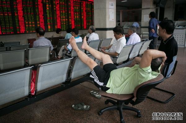 图片说明:2015年7月2日,上海,股民穿着绿衣翘着脚在营业厅看着股市大屏幕。澎湃新闻记者贾亚男图